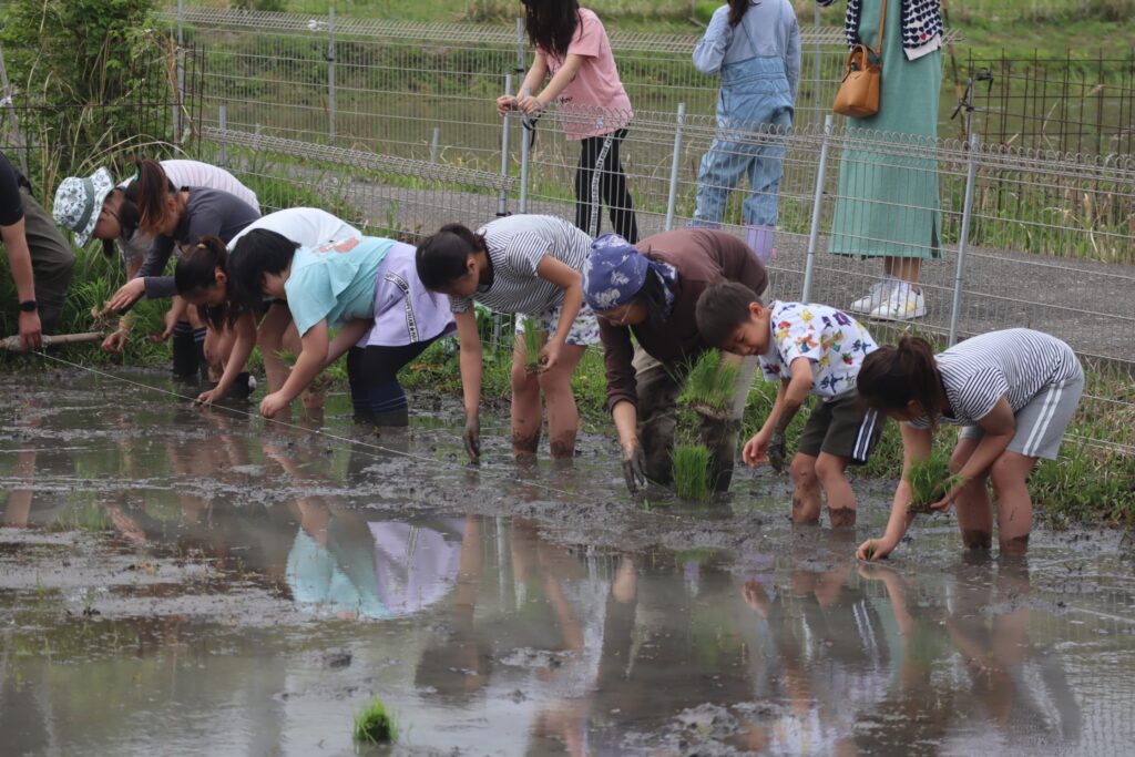 NPO法人たてやま・海辺の鑑定団では、森里川海を繋ぐ活動を応援しています。「笠名たんぼくらぶ」の田植え体験