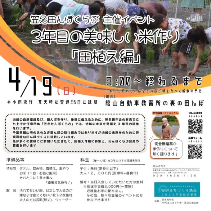 主催 笠名田んぼくらぶ 協賛(共催)NPO法人たてやま・海辺の鑑定団 笠名青年会