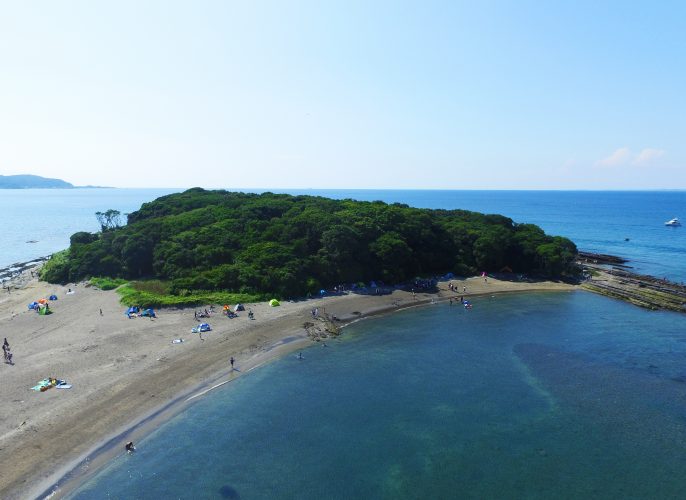 たてやま・海辺の鑑定団では、沖ノ島の森ので再生活動を行うために、約3,000㎡を実証区として使用許可を館山市からいただいています。